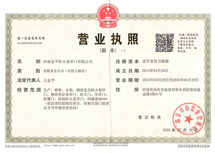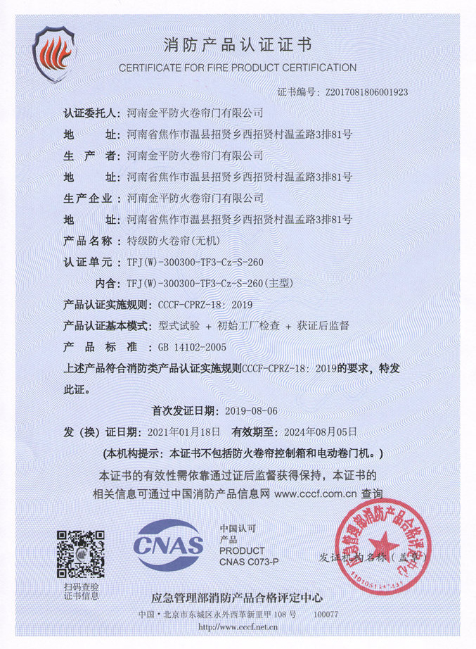 特級(jí)防火卷簾(折疊提升式(shì))3C證書